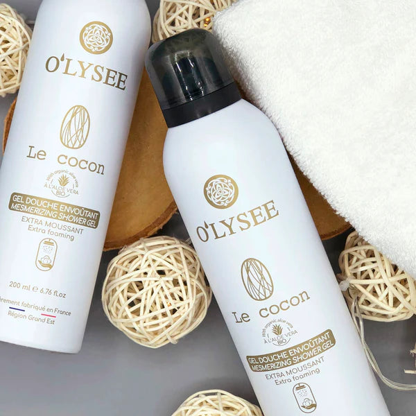 The O'lysée le Cocon shower gel, exotic and cleansing, transforms into a generous, creamy foam upon contact with water. For the greatest pleasure of your skin, this delicate texture with the beneficial properties of organic Aloe Vera and vegetable glycerin will envelop you like a caress of softness . A delicate trail, exhilarating fragrances for a new sensory experience. Its captivating fragrance brings you a unique shower experience.