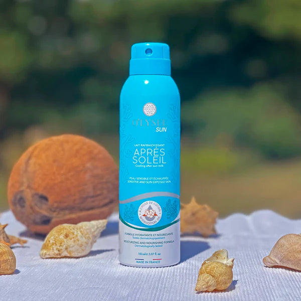 Our refreshing after-sun milk O'lysée Sun moisturizes and nourishes sensitive skin and skin heated by sun exposure . A formula enriched with cotton oil for rapid penetration and intense hydration for 24 hours . Our mist allows 360-degree use and can be used on the face and body. This after-sun milk gives you a feeling of freshness, lightness and well-being. An essential beauty ally to accompany you throughout your summer.
